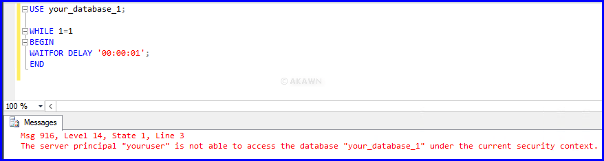 To test this, below is a user called youruser which is a member of the db_owner database role in your_database_1.
