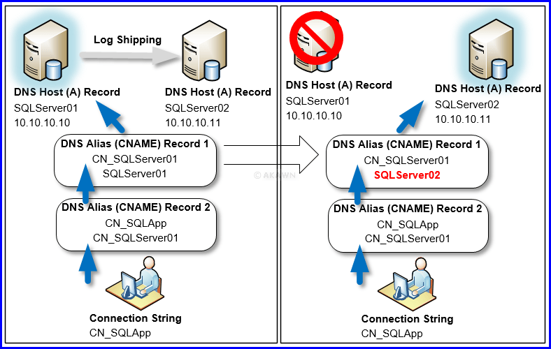 - You don’t have to rename servers when the database moves during a DR failover/failback scenario.